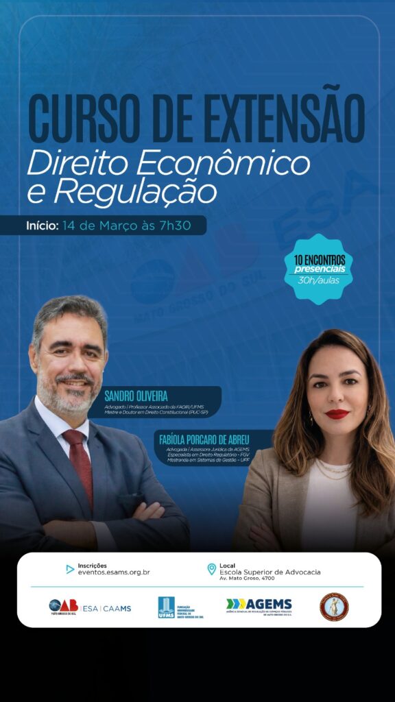 O conteúdo contempla o estudo dos principais instrumentos de regulação, como o poder de polícia administrativa, normas técnicas, outorgas, sanções, mecanismos de “compliance” e “enforcement” regulatório.