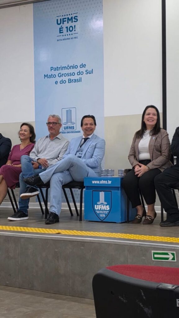 Após o juramento de posse, em seu discurso, o Diretor agradeceu e reafirmou o compromisso institucional. Iniciou cumprimentando as autoridades, a Reitora da UFMS, colegas, servidores, familiares e convidados, destacando a confiança recebida ao ser reconduzido ao cargo de Diretor.