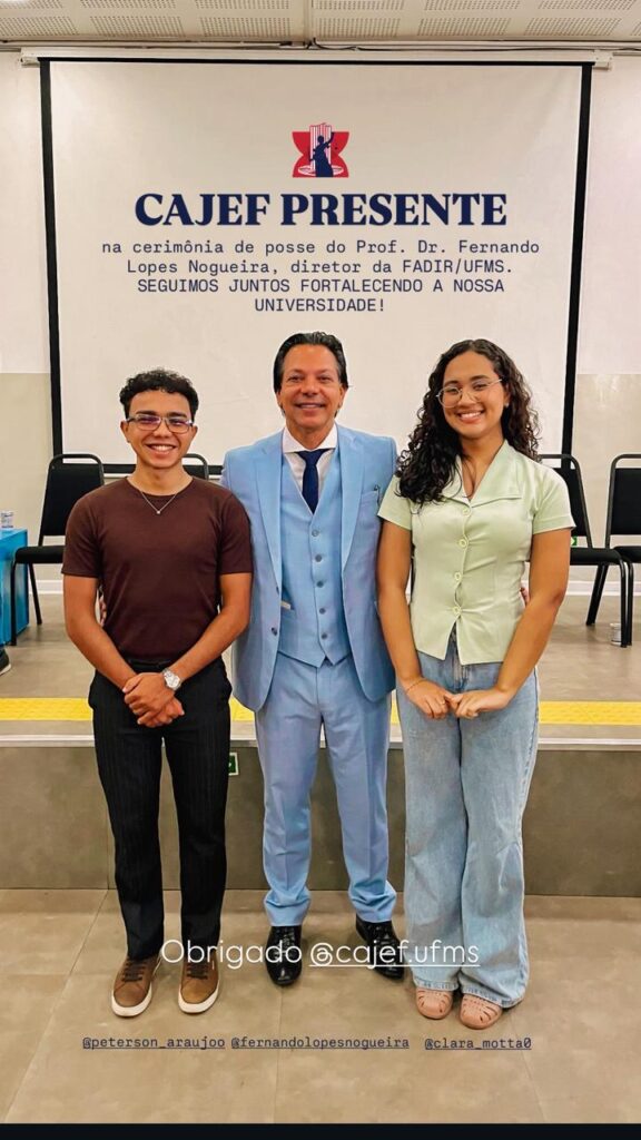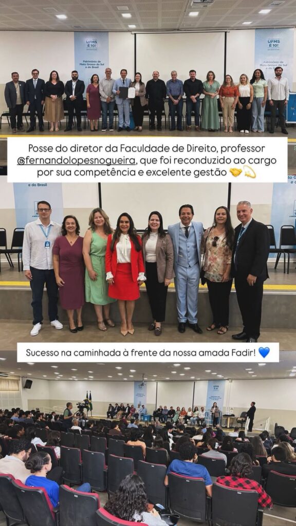 Foi realizada na manhã da última quarta-feira, 15 de abril de 2026, a cerimônia de posse do professor Fernando Lopes Nogueira para o cargo de Diretor da Faculdade de Direito (Fadir). A solenidade que marcou a recondução para o mandato 2025-2029 teve a presença de autoridades, familiares, professores, técnicos-administrativos e estudantes da UFMS e da Fadir.